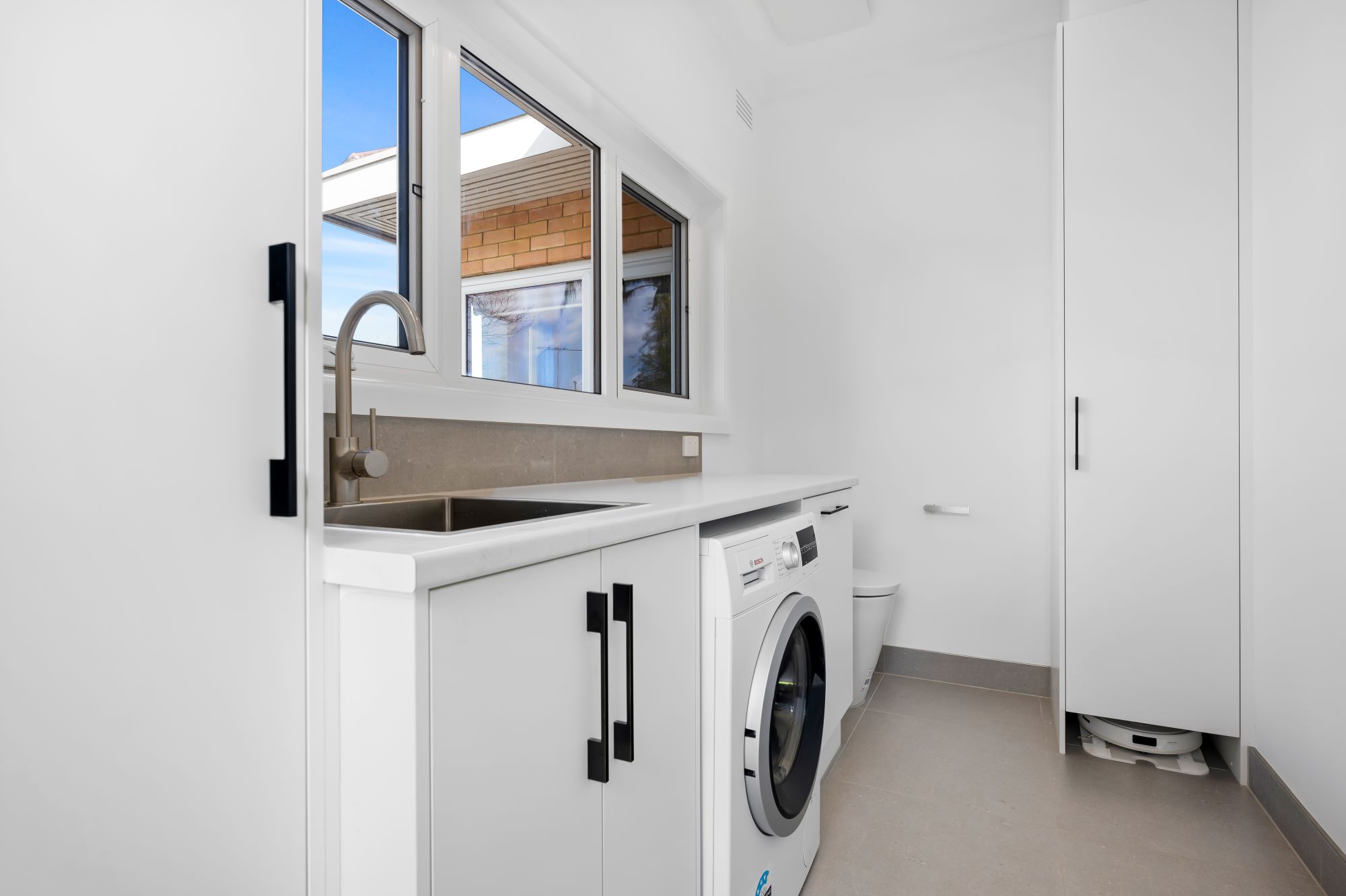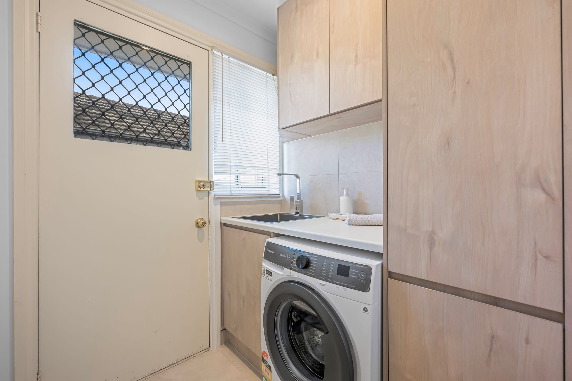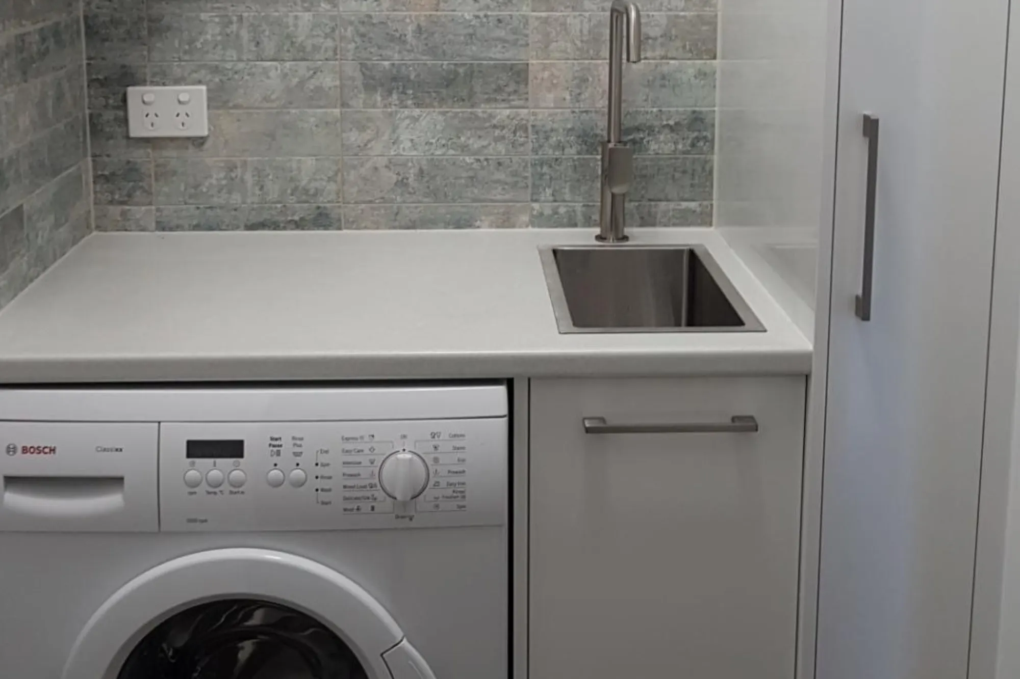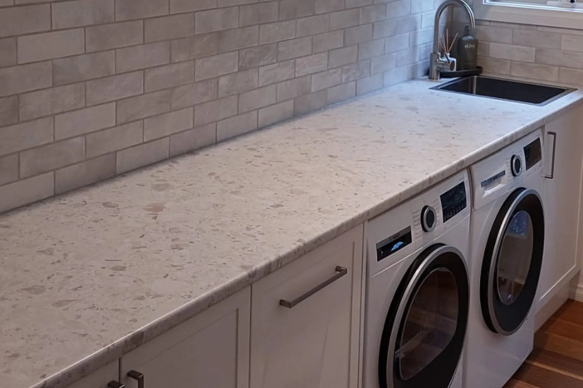 On average, a laundry renovation takes between 2 to 4 weeks. Timelines can vary depending on material selections, with stone benchtops often requiring longer lead times for manufacturing and installation.