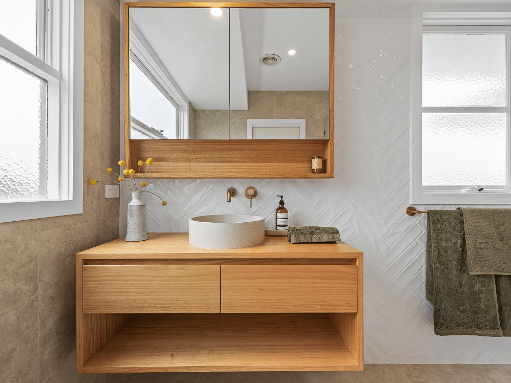 Making a bathroom more spacious can be achieved by decluttering, using light colours, incorporating mirrors to reflect light, and maximising vertical storage. Opt for space-saving fixtures and keep the design minimalistic. Progressive Bathrooms can help you create a more spacious and organised bathroom.