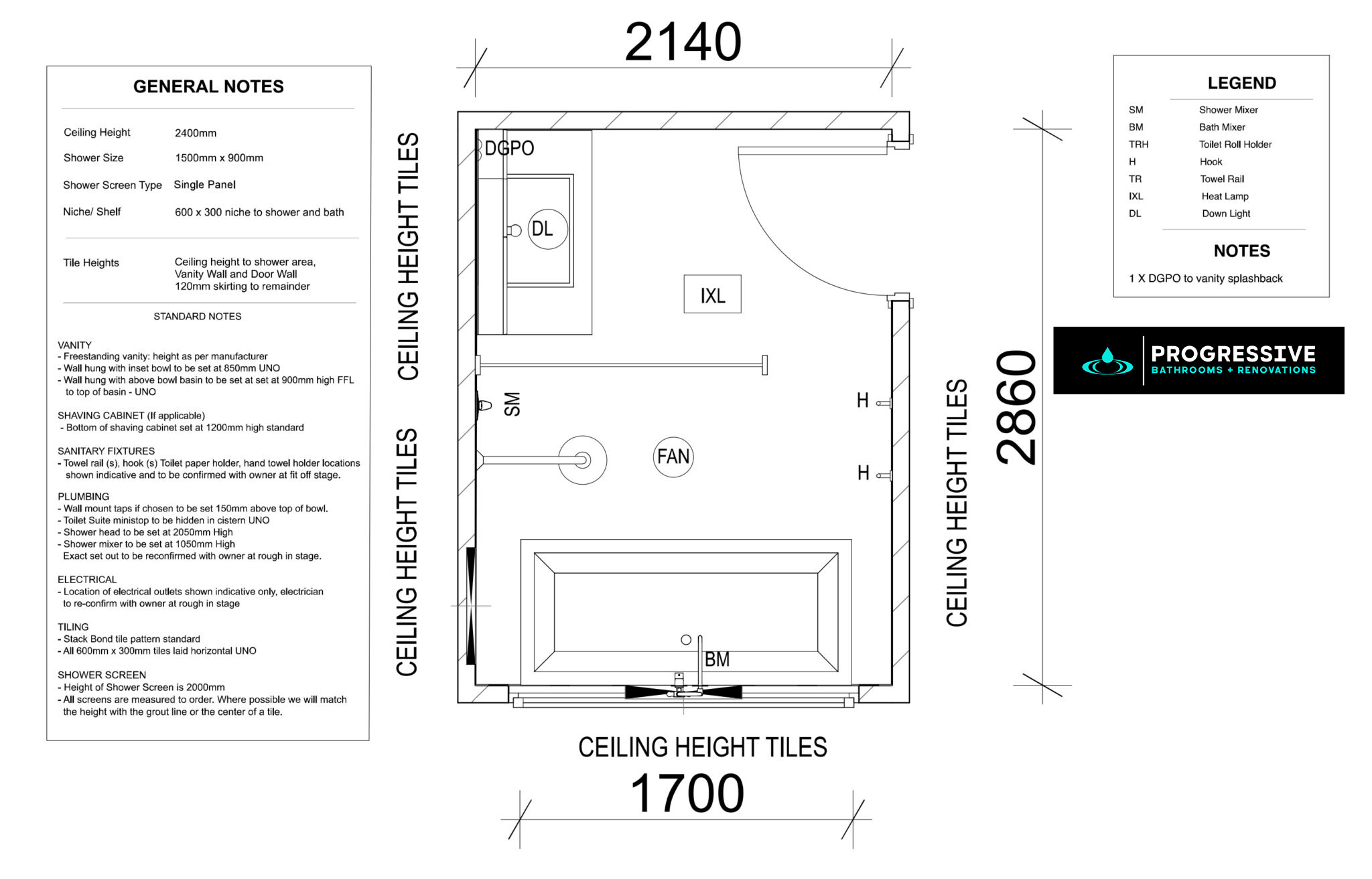 For homes where space is at a premium, this compact bathroom design (2140mm x 2860mm) is the epitome of efficiency without sacrificing style. Despite its smaller footprint, the layout ensures optimal functionality and a sense of openness through thoughtful planning.
