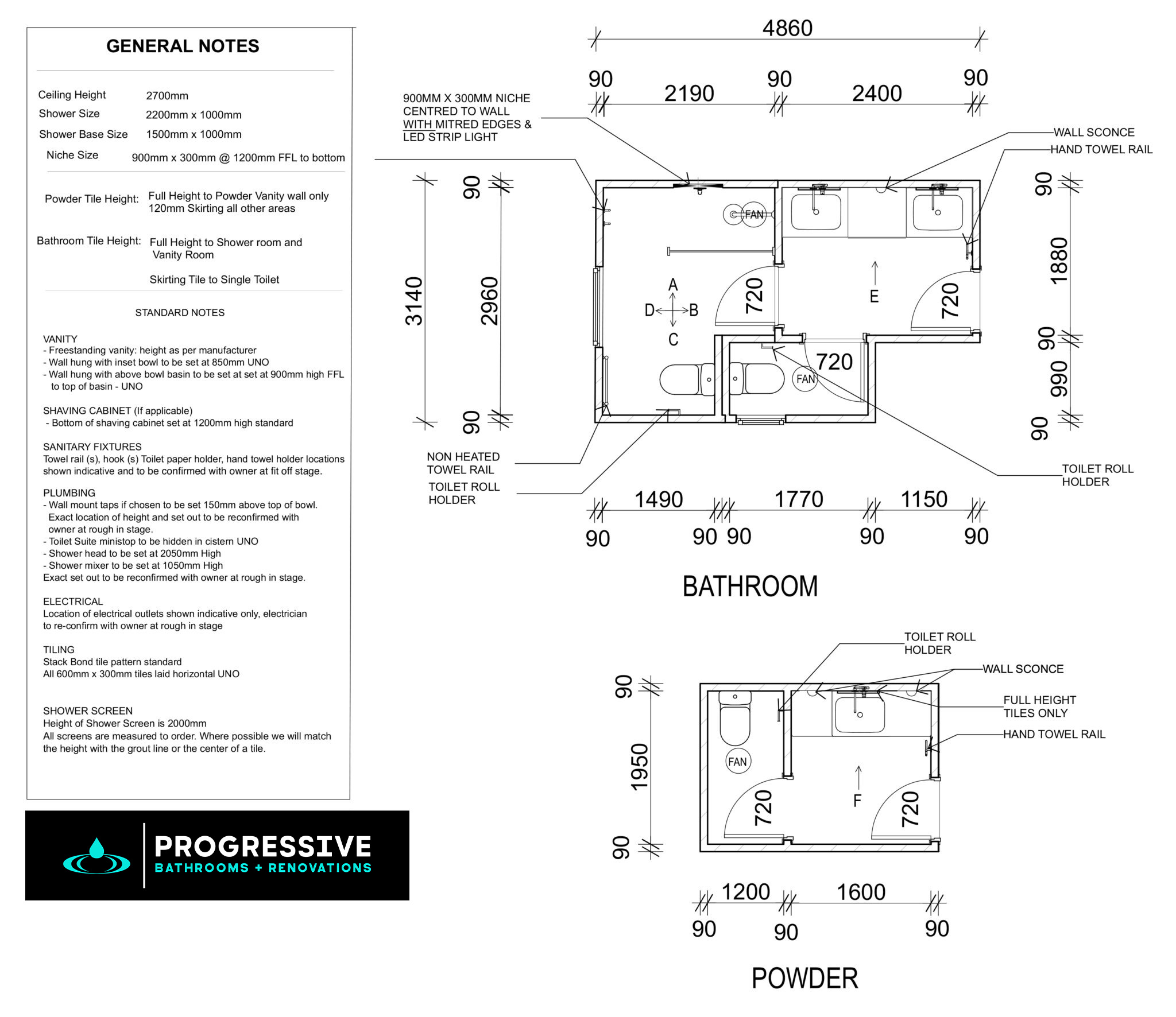 This thoughtful design incorporates both a main bathroom (4860mm x 3140mm) and a separate powder room (1950mm x 1200mm), ensuring practicality and convenience for larger families or homes that entertain frequently. By creating two distinct spaces, this layout reduces congestion during busy mornings and offers added comfort for guests.