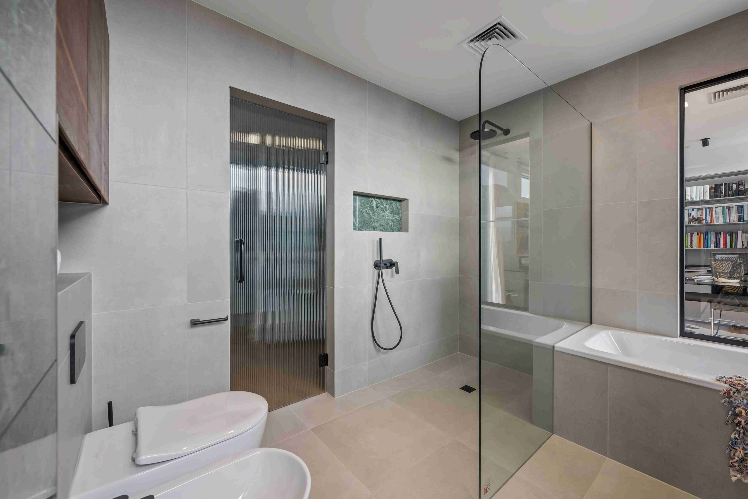 This layout is perfect for growing families, older adults, or anyone seeking a future-proof bathroom that combines style and accessibility. Thoughtful details like the false wall and hand-held shower elevate this design, ensuring it remains practical, beautiful, and adaptable for years to come.